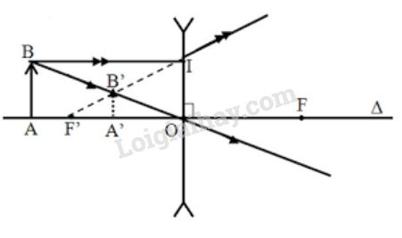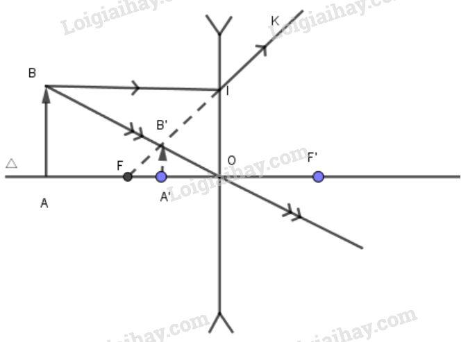 – Từ B’ hạ vuông góc với trục chính của thấu kính, cắt trục chính tại A’. A’ là ảnh của điểm A.