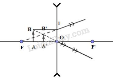 – Khoảng cách từ ảnh đến thấu kính: \(OA’ = 3.OA = 3.8 = 24cm\)
