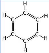 Sáu nguyên tử C trong phân tử benzen liên kết với nhau tạo thành mạch vòng sáu cạnh đều, có ba liên kết đôi xen kẽ ba liên kết đơn.