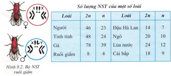 – Quan sát hình 8.2 và mô tả bộ NST của ruồi giấm về số lượng và hình dạng.