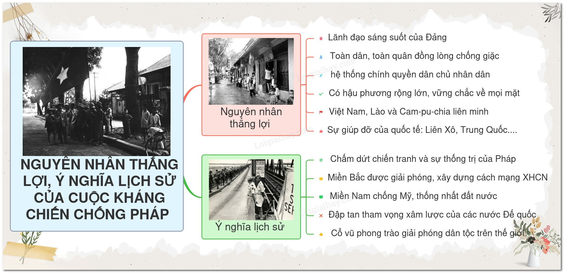 Sơ đồ tư duy nguyên nhân thắng lợi, ý nghĩa lịch sử của cuộc kháng chiến chống thực dân Pháp (1945-1954)