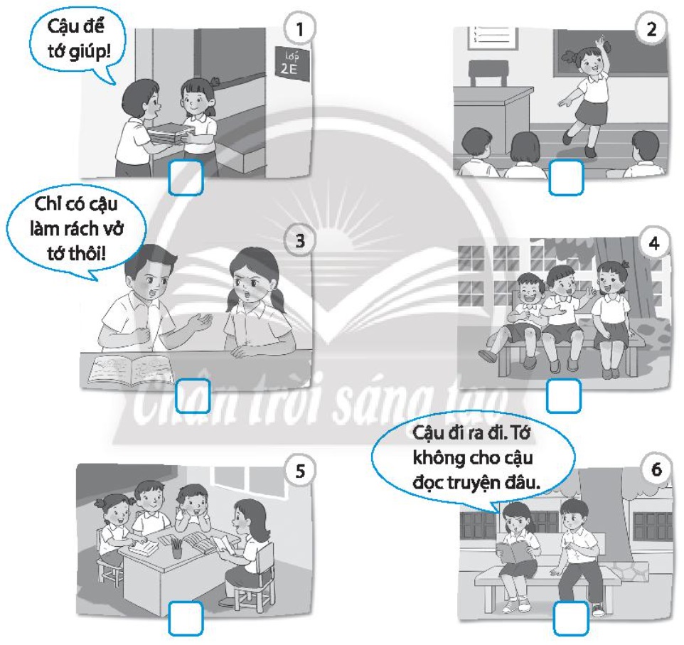 Đánh dấu X vào ô vuông dưới những tranh thể hiện việc làm thân thiện, vui vẻ của các bạn nhỏ.
