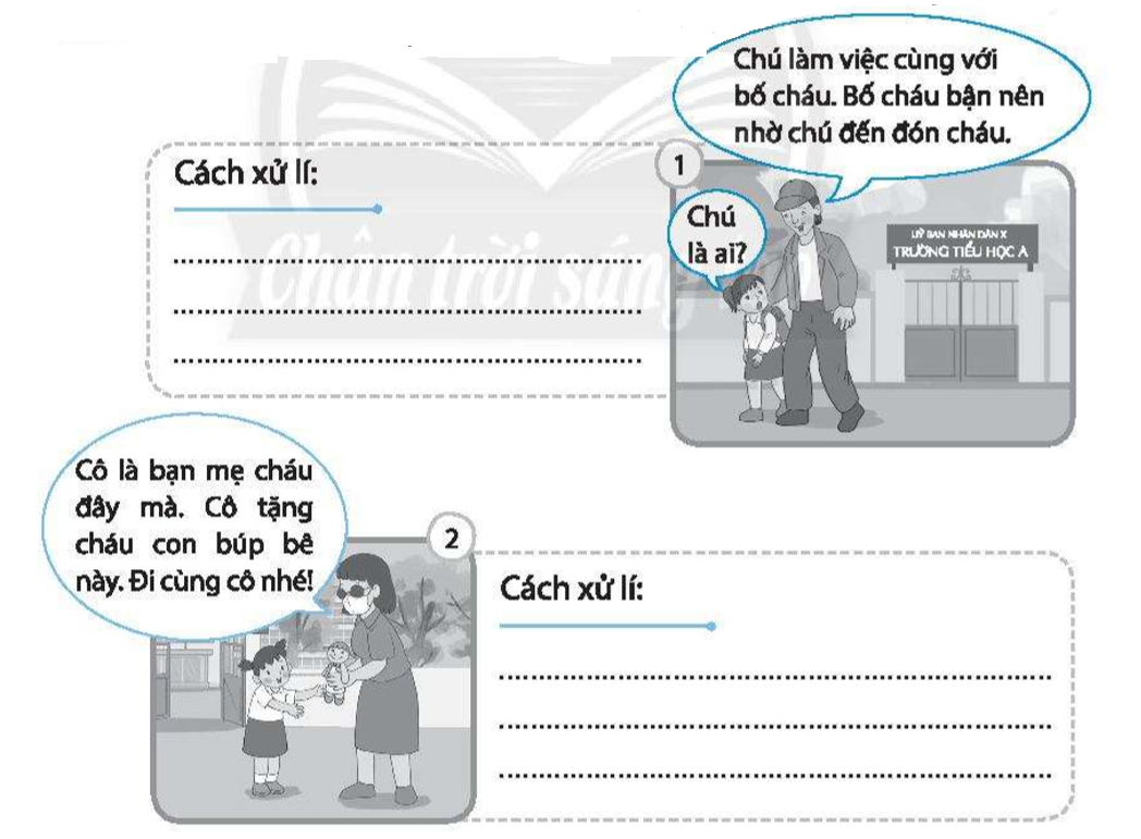 Quan sát tranh và viết cách xử lí tình huống có nguy cơ bị bắt cóc của em.