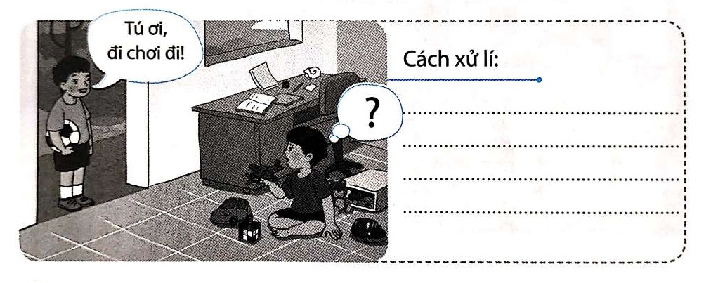 Viết cách xử lý tình huống phù hợp nếu em là bạn Tú trong tranh.