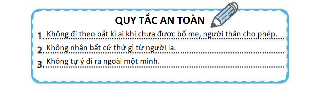 Viết bản quy tắc an toàn để phòng tránh bị lạc, bị bắt cóc vào khung dưới đây: