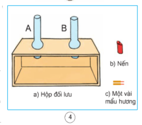 Đặt một cây nến đang cháy dưới ống A. Đặt vài mẩu hương cháy đã tắt lửa nhưng còn bốc khói vào dưới ống B.