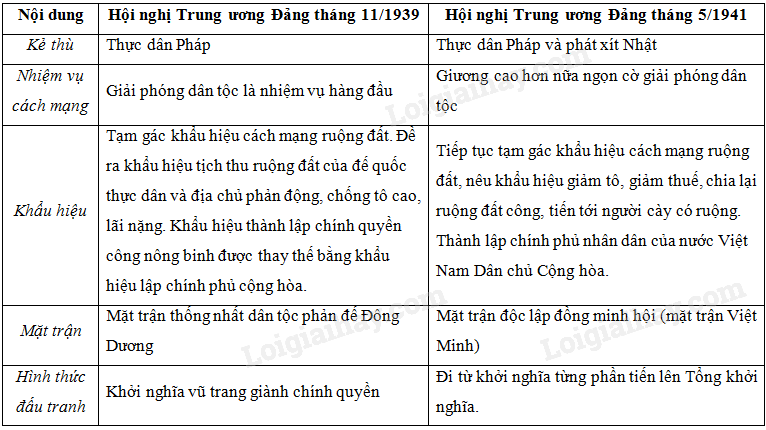 – So sánh Hội nghị Trung ương Đảng tháng 11/1939 với Hội nghị Trung ương Đảng tháng 5/1941.