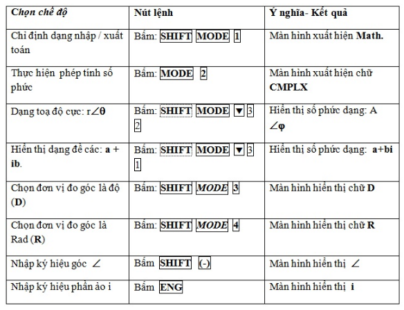 • Bước 2: Bấm  SHIFT MODE \( \vee \) 3 2 :  dạng hiển thị toạ độ cực:( r∠Θ )
