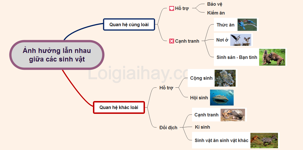 Sơ đồ tư duy Ảnh hưởng lẫn nhau giữa các sinh vật: