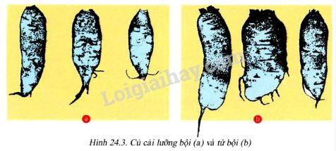 + Có thể nhận biết cây đa bội bằng mắt thường qua những dấu hiệu: Kích thước của cơ quan sinh dưỡng (tế bào xôma của cây rêu đa bội; thân, cành, lá của cây cà độc dược đa bội; củ cải đường đa bội) và cơ quan sinh sản (quả táo tứ bội) lớn hơn so với ở cây lưỡng bội.