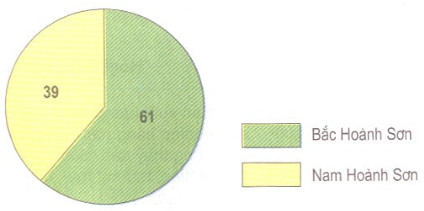 Hình 23.2. Biểu đồ tỉ lệ đất lâm nghiệp có rừng phân theo phía bắc và phía nam Hoành Sơn (%)