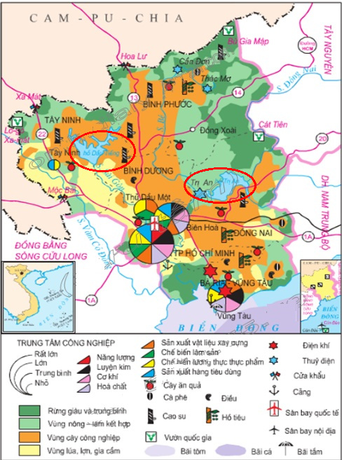 Nêu vai trò của hai hồ chứa này đối với sự phát triển nông nghiệp của vùng Đông Nam Bộ.