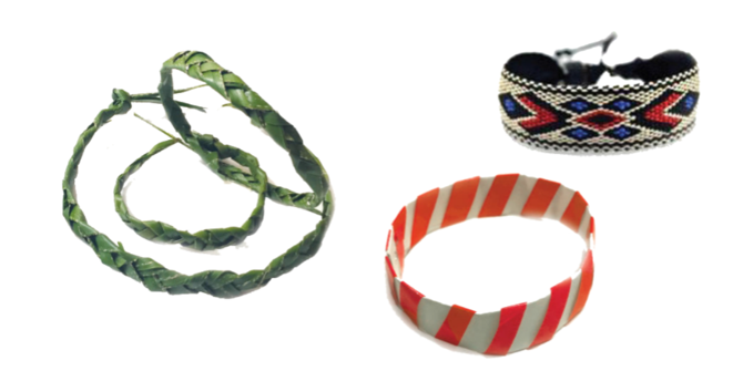 Chiếc vòng màu xanh được làm từu lá cây.