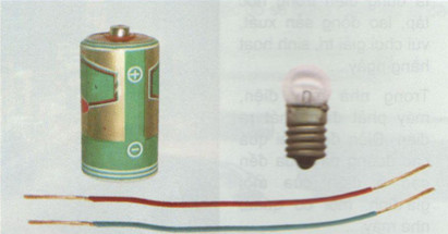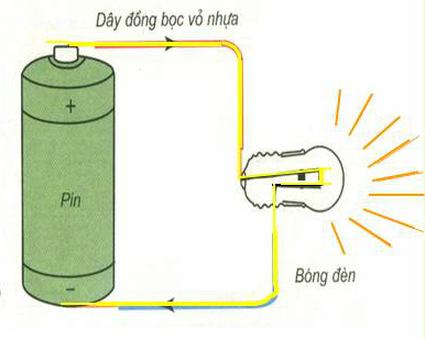 Đèn sáng nếu có dòng điện chạy qua một mạch kín từ cực dương của pin, qua bóng đèn đến cực âm của pin.