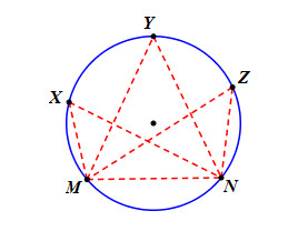Các góc \(\widehat {MXN},\widehat {MYN,}\widehat {MZN}\) là các góc nội tiếp cùng chắn cung MN nên \(\widehat {MXN} = \widehat {MYN} = \widehat {MZN}\).