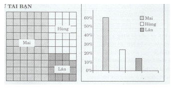 Đầu năm học, lớp 6A bầu lớp trưởng với ba ứng cử viên là Mai, Hùng, Lân. Tỉ số phần trăm phiết bầu của ba bạn là :
