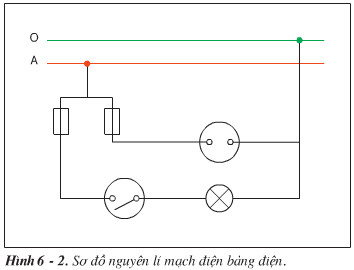 – Bảng điện gồm: 2 cầu chì; 1 ổ cắm điện; 1 công tắc điều khiển một bóng đèn.
