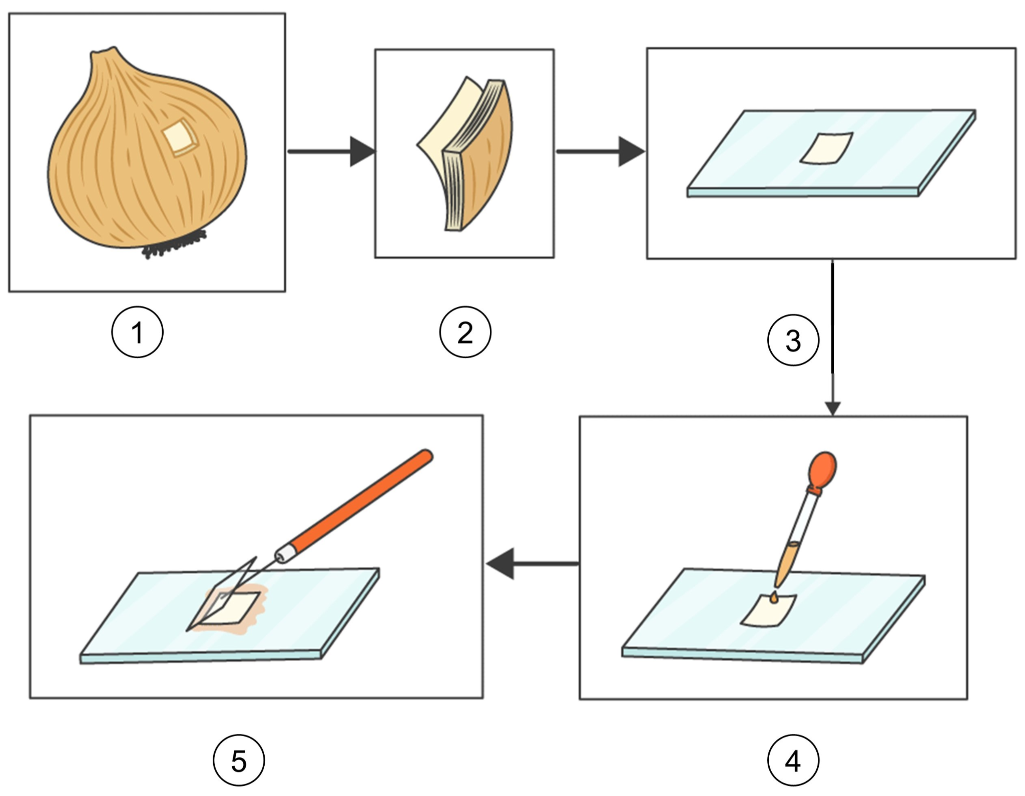 + Đặt vảy hành đã bóc lên lam kính đã có giọt nước cất, đậy lamen.