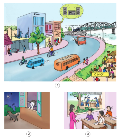 +Tiếng ồn có thể phát ra từ : tiếng động cơ ô tô, xe máy, ti vi, loa đài, chợ, trường học giờ ra chơi, chó sủa trong đêm, máy cưa, máy khoan bê tông.