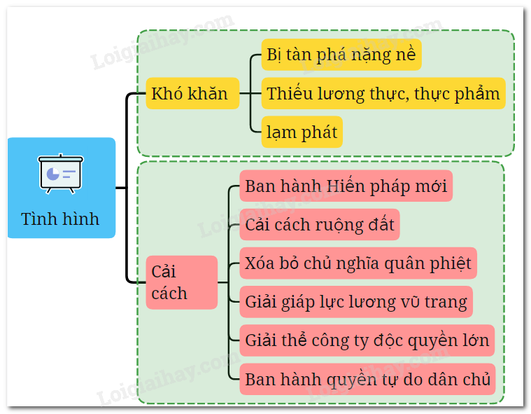 Sơ đồ tư duy về những khó khăn và cải cách dân chủ ở Nhật Bản