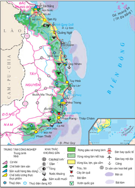 Hình 26.1. Lược đồ kinh tế vùng Duyên hải Nam Trung Bộ