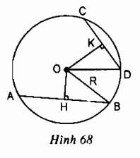 mà \(O{H^2} + H{B^2} = O{K^2} + K{D^2}\) \( \Rightarrow HB{\rm{ }} > {\rm{ }}KD \Rightarrow AB{\rm{ }} > {\rm{ }}CD\)