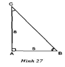 \(\eqalign{& tgB = {{AC} \over {AB}} = {8 \over 5} \Rightarrow \widehat B \approx {58^o}  \cr &  \Rightarrow \sin B = {{AC} \over {BC}} \cr &  \Rightarrow \sin 58^0 = {{AC} \over {BC}} \cr &  \Rightarrow  {{AC} \over {BC}} \approx 0,848  \cr &  \Rightarrow BC = {{AC} \over {0,848}} \approx 9,433 \cr} \)