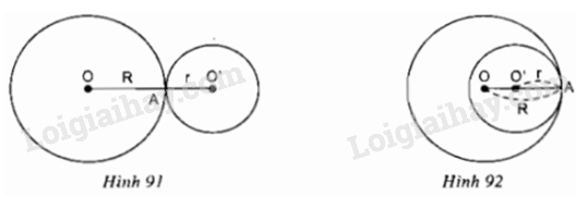 Hình 91: Hai đường tròn tiếp xúc ngoài tại A nên A nằm giữa O và O’