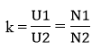 Dựa vào kiến thức đã học, em hãy cho biết biểu thức tính hệ số biến áp của máy biến áp một pha?