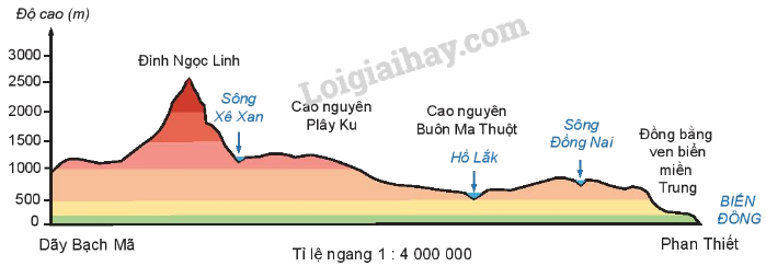 – Lát cắt lần lượt đi qua các dạng địa hình: đồng bằng, cao nguyên, núi.