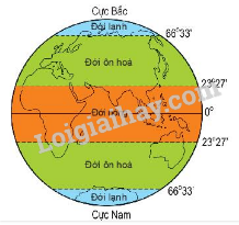 – Hai đới lạnh (hàn đới): 66o33’B – cực Bắc và 66o33’N – cực Nam.