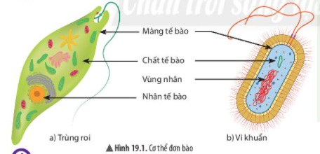 Trong hình 19.1a, 19.1b, đặc điểm chung nhất của các cơ thể đơn bào đó là được tạo nên từ một tế bào.