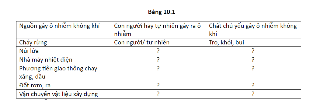 Bài 10: Không khí và bảo vệ môi trường không khí