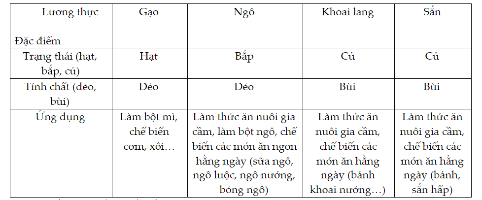 - Một số lương thực, thực phẩm KHTN 6 Chân trời sáng tạo