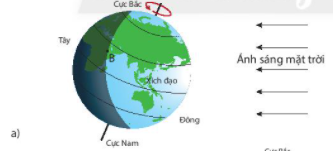 Người ở vị trí B sẽ quan sát thấy hiện tượng mặt trời mọc. Sau đó sẽ tiếp tục thấy mặt trời chuyển động lên cao vì Trái Đất quay quanh trục khiến cho vị trí B được mặt trời chiếu tới.