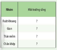 Xác định môi trường sống của các nhóm động vật không xương sống bằng cách hoàn thành bảng theo mẫu sau: