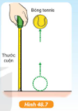 + Thả rơi quả bóng tennis ở độ cao 1m so với sàn nhà. Dùng sợi dây căng ngang ở độ cao 1m để làm mốc (hình 48.7).