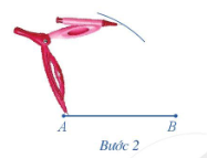 Bước 2. Lấy A làm tâm, dùng compa vẽ một phần đường tròn có bán kính AB.