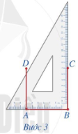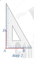 Bước 2. Đặt đỉnh góc vuông của ê ke trùng với điểm A và một cạnh ế ke nằm trên AB, vẽ theo cạnh kia của ê ke đoạn thẳng AD có độ dài bằng 7 cm.