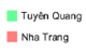 Cột màu xanh và màu hồng biểu diễn lượng mưa trung bình các tháng năm 2018 ở Tuyên Quang và Nha Trang.
