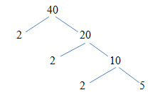 – Vẽ 2 nhánh từ số 40 cho hai số 2 và 20.