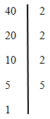 – Viết 40 thành tích của 2 với một thừa số khác: 40=2.20.