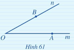 Quan sát Hình 61.a) Tia OA trùng với tia nào? b) Hai tia OB và Bn có trùng nhau không? Vì sao? c) Hai tia Om và On có đối nhau không? Vì sao?