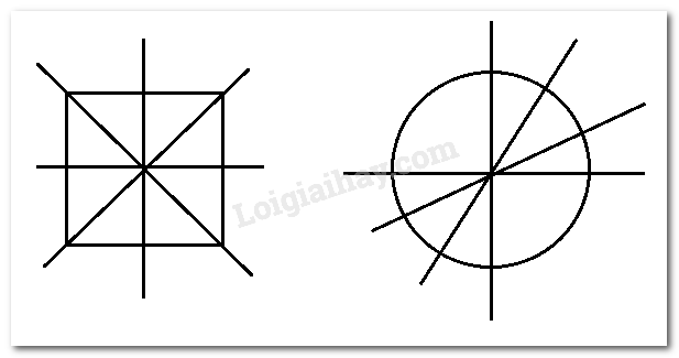 * Hinh tròn có vô số trục đối xứng là các đường thẳng đi qua tâm của hình vuông.