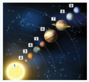 Em hãy cho biết các thiên thể số 4, 6, 8 trong hình bên là những hành tinh nào trong hệ Mặt Trời.