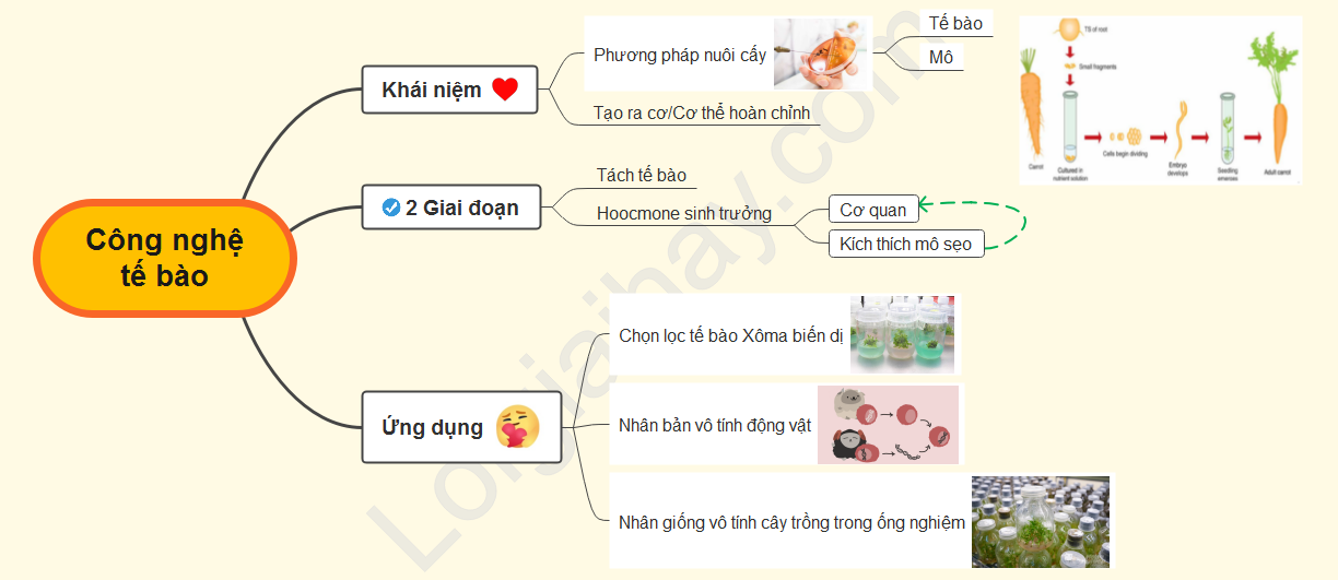 Ứng dụng công nghệ tế bào. Công nghệ tế bào được ứng dụng khá rộng rãi trong nhân giống vô tính ờ cây trồng và trong tạo giống cây trồng mới.