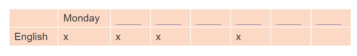 Example: Mai goes to school every morning from Monday to Friday. On Monday, Wednesday and Friday afternoons,…