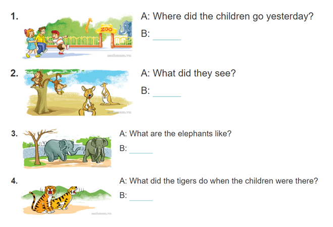 B: Tớ thấy vài con thú. Tớ rất thích ngắm voi con.