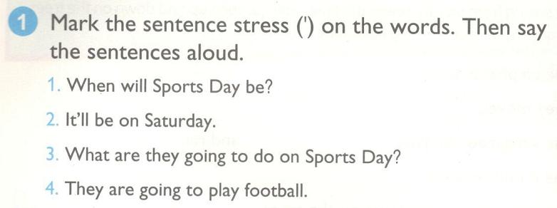 1. Mark the sentence stress (‘) on the words. Then say the sentences aloud.