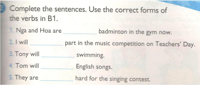 Hoàn thành các câu sau. Sử dụng dạng đúng của động từ ở phần B1